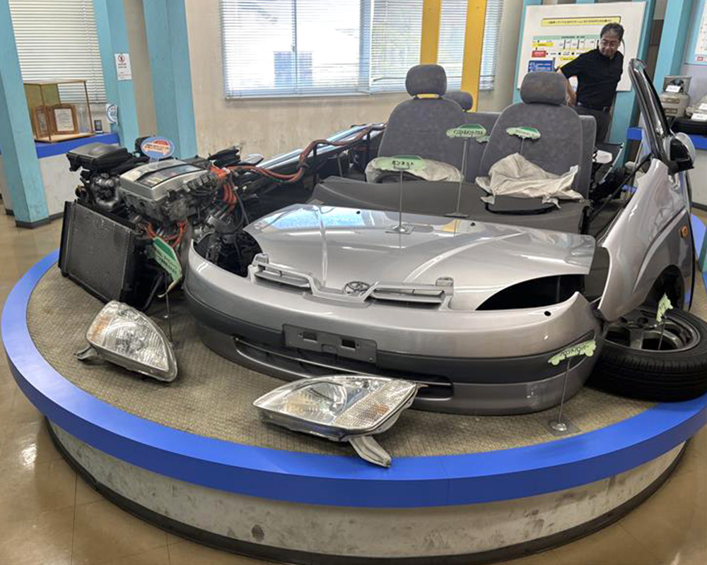 中の様子は撮影できませんでしたが、実際に廃車となった車の解体作業を見学し、車を大切に扱おうと改めて実感したとともに、リサイクルを行っている様子に感銘を受けました。