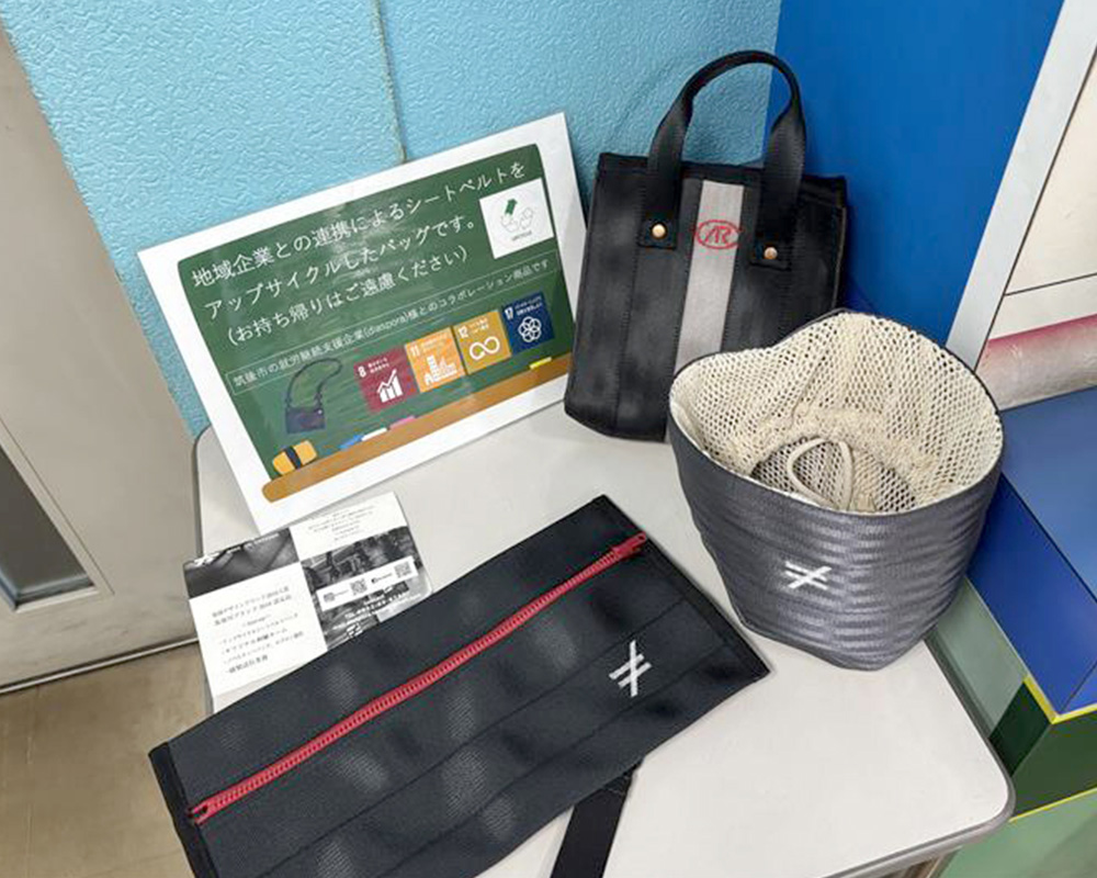 実際見た私たちでも遠目ではシートベルトとは思わず、リサイクル率の高さに驚きました。