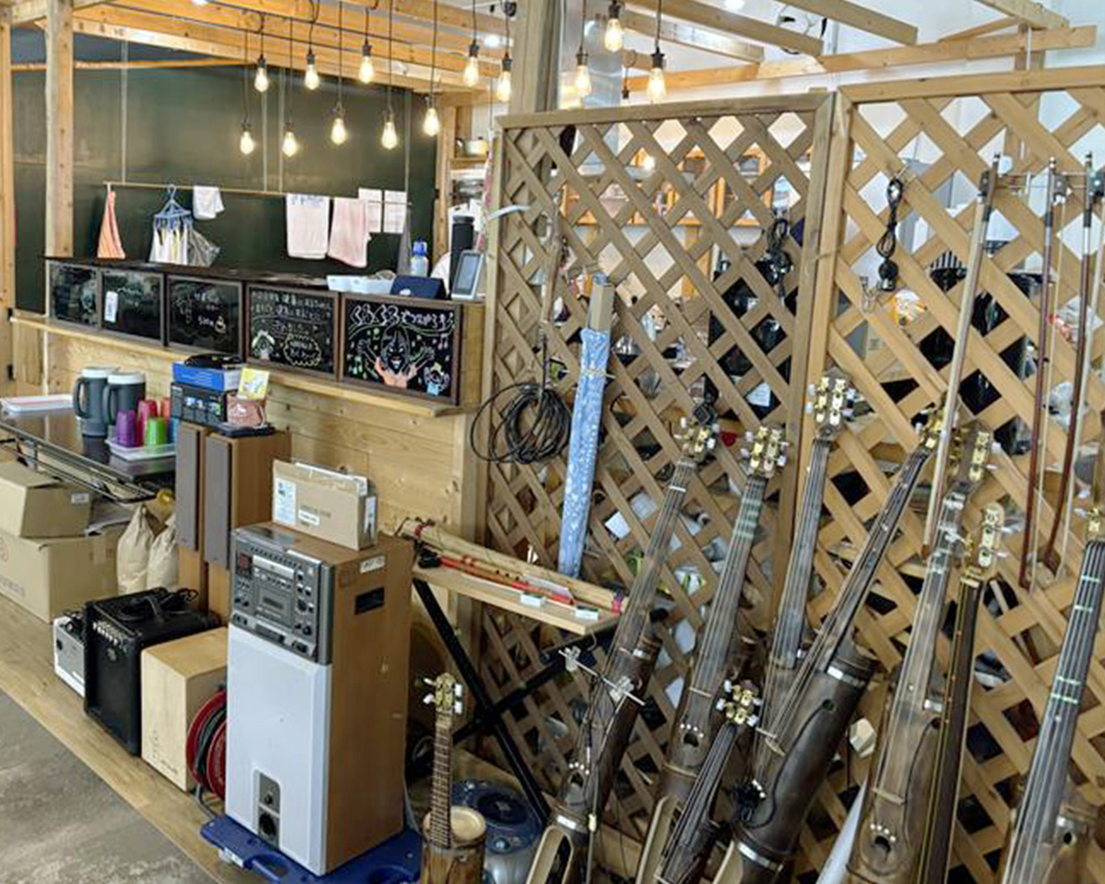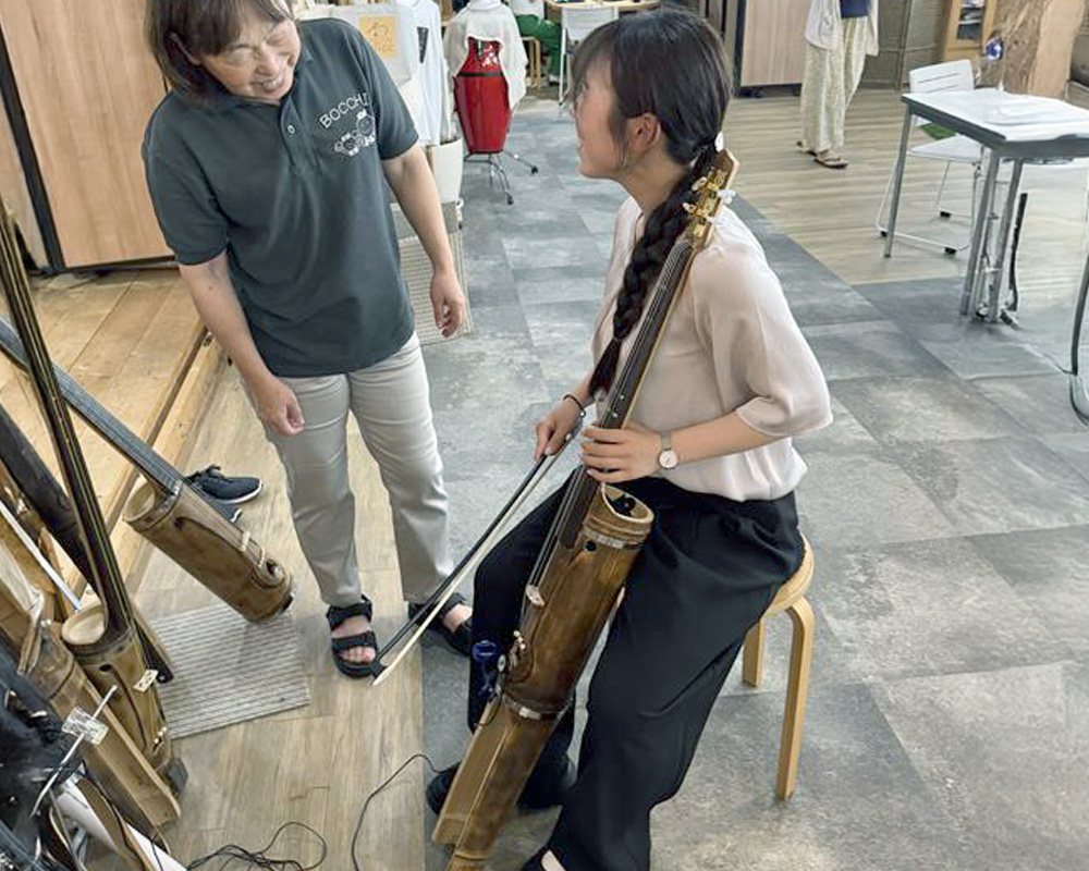 またアップリサイクル品として、竹から楽器を作成しており実際に弾かせてもらいました!(写真はチェロ)