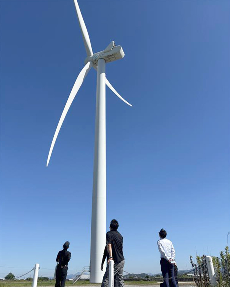 陸上風車では、真下で見ることができあまりの迫力に少し怖さを覚えました。